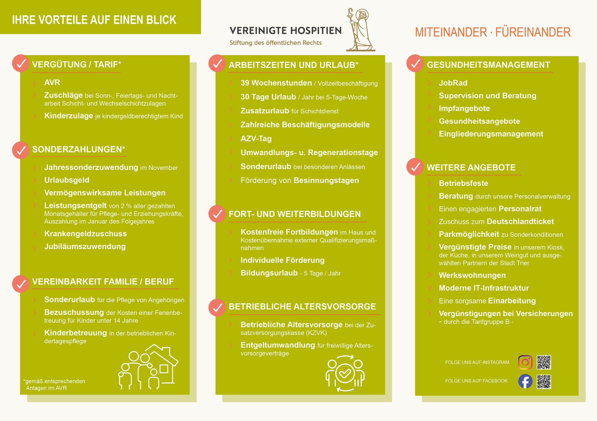 Als Stiftung des öffentlichen Rechts sind die Vereinigten Hospitien Träger verschiedener Sozialeinrichtungen und einer der größten Arbeitgeber in der Region Trier. Wir machen es uns zur Aufgabe für unsere Mitmenschen da zu sein. Vor allem in jenen Abschnitten des Lebens, in denen Hilfe am Nötigsten ist.